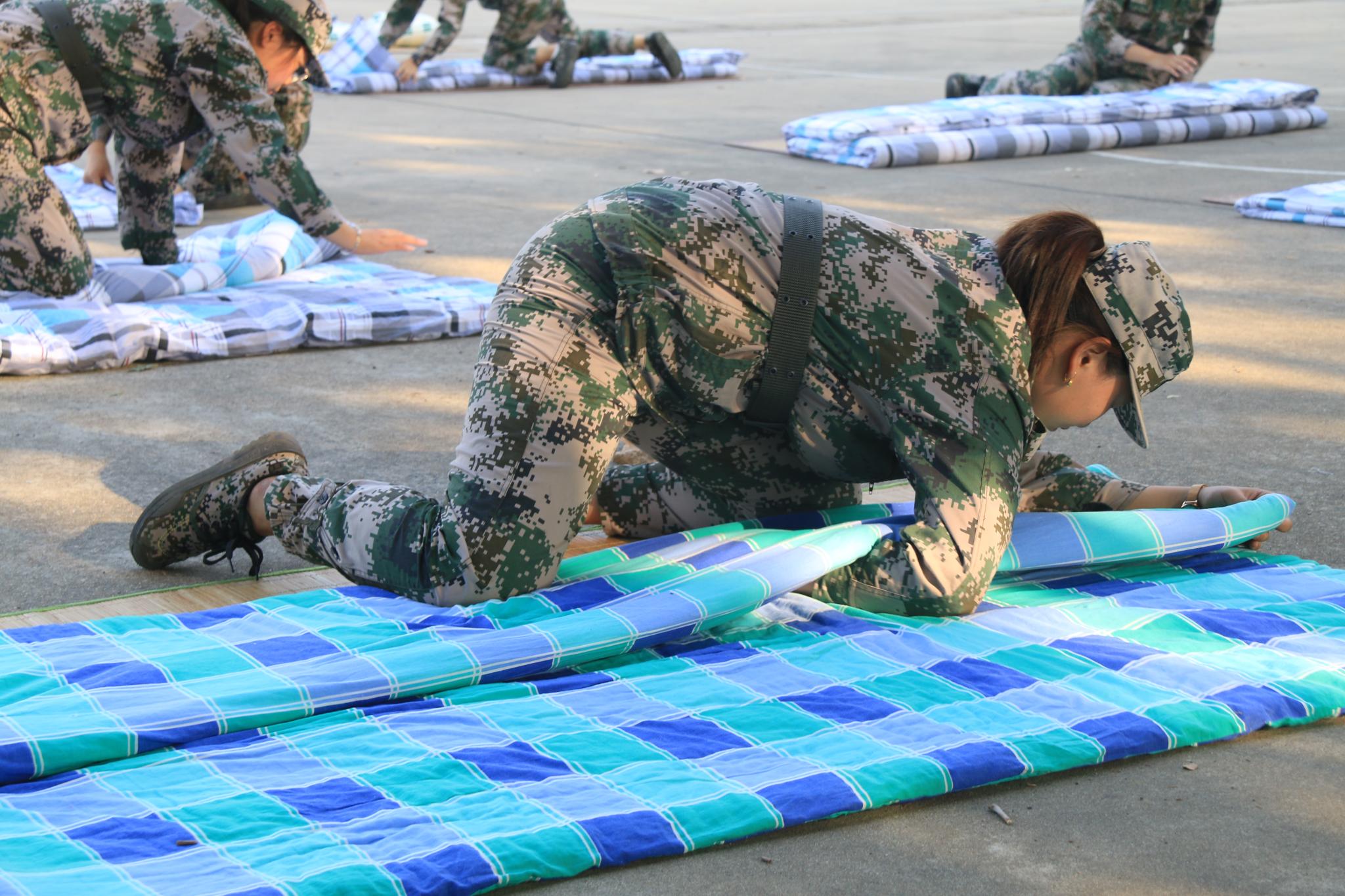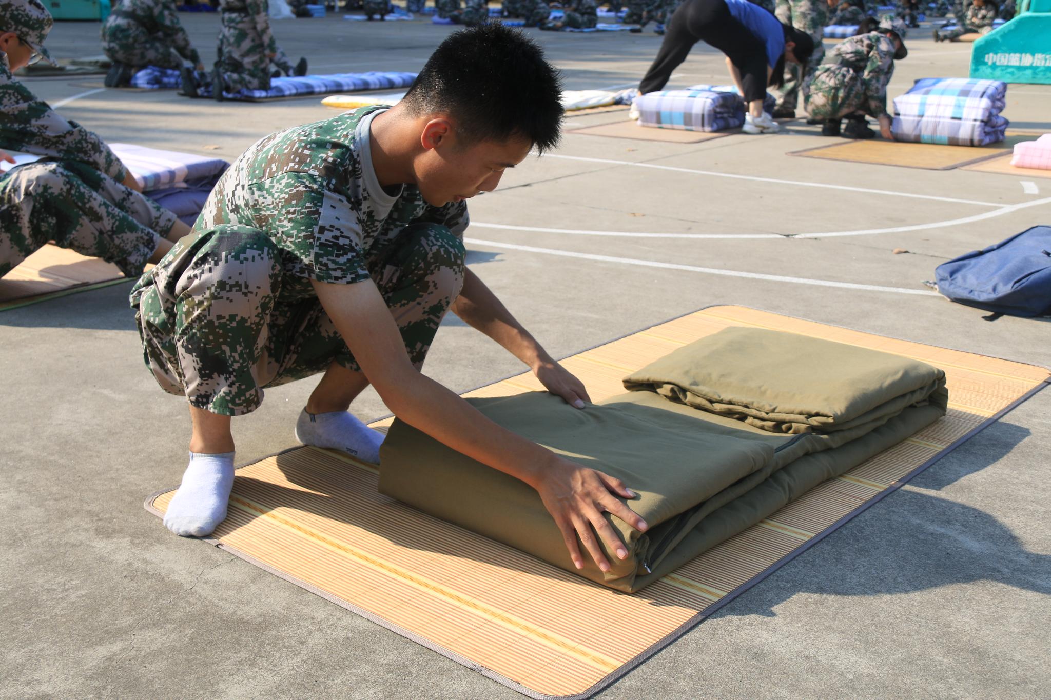 本次大赛要求参赛新生在规定时间内以部队规范叠被,由教官进行评比打分。新生们拿着自己的席子和被子来到比赛场地,做好准备。随着教官哨声响起,参赛新生立即进入比赛状态,迅速蹲下,精神集中,结合先前教官们的指导,开始有条不紊地叠着被子,不停地抹平每一处褶皱,拉平每一层被单,使其表面光滑。在规定时间内,原本散乱的被子经过他们熟练的操作,逐渐变成了整齐的豆腐块。比赛结束后,教官们仔细查看每一个被子,进行内务点评,同时,内务标兵脱颖而出。
