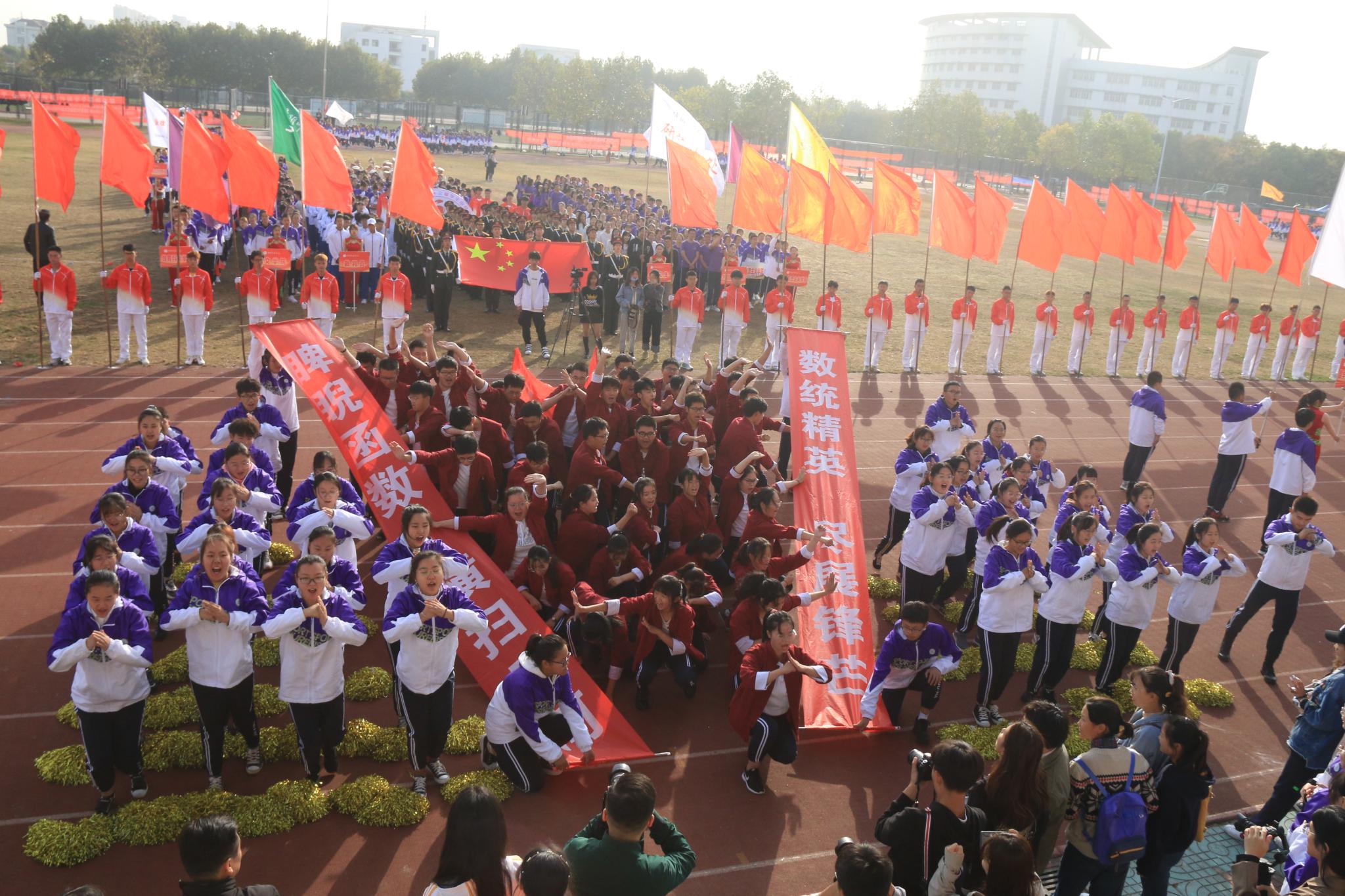 随着《运动员进行曲》的乐声响起,国旗队,会徽,军鼓乐团,铜鼓乐团,彩旗方阵,裁判方阵和各二级学院方阵依次入场。数统学院的学子们穿着统一,步伐整齐,精神抖擞,情绪激昂,向全校师生展现数统学院积极进取、永不言败的运动精神。主席台前,他们高喊口号,以“睥睨函数,横扫几何”展运动健儿坚定信念;以“数统精英,尽展锋芒”显数统学子必胜信心。