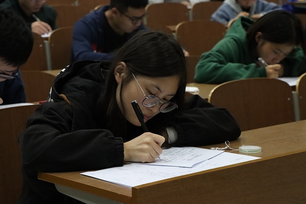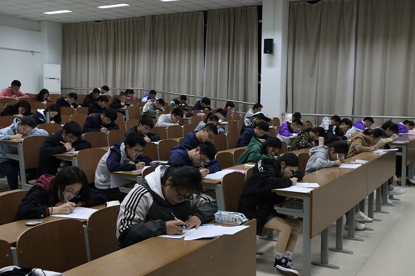 晚上六点半,活动正式开始,同学们有序就坐,监考老师为参赛选手讲解注意事项,并分发试卷和答题纸。本次竞赛的试题灵活多变,紧扣教材,联系生活,充分体现数学学科立足生活、解决实际问题的本质功能。参赛选手们在拿到试卷后便开始认真审题,细心计算,整个竞赛过程紧张安静,展现出良好的数学素养,营造出浓郁的考试氛围。