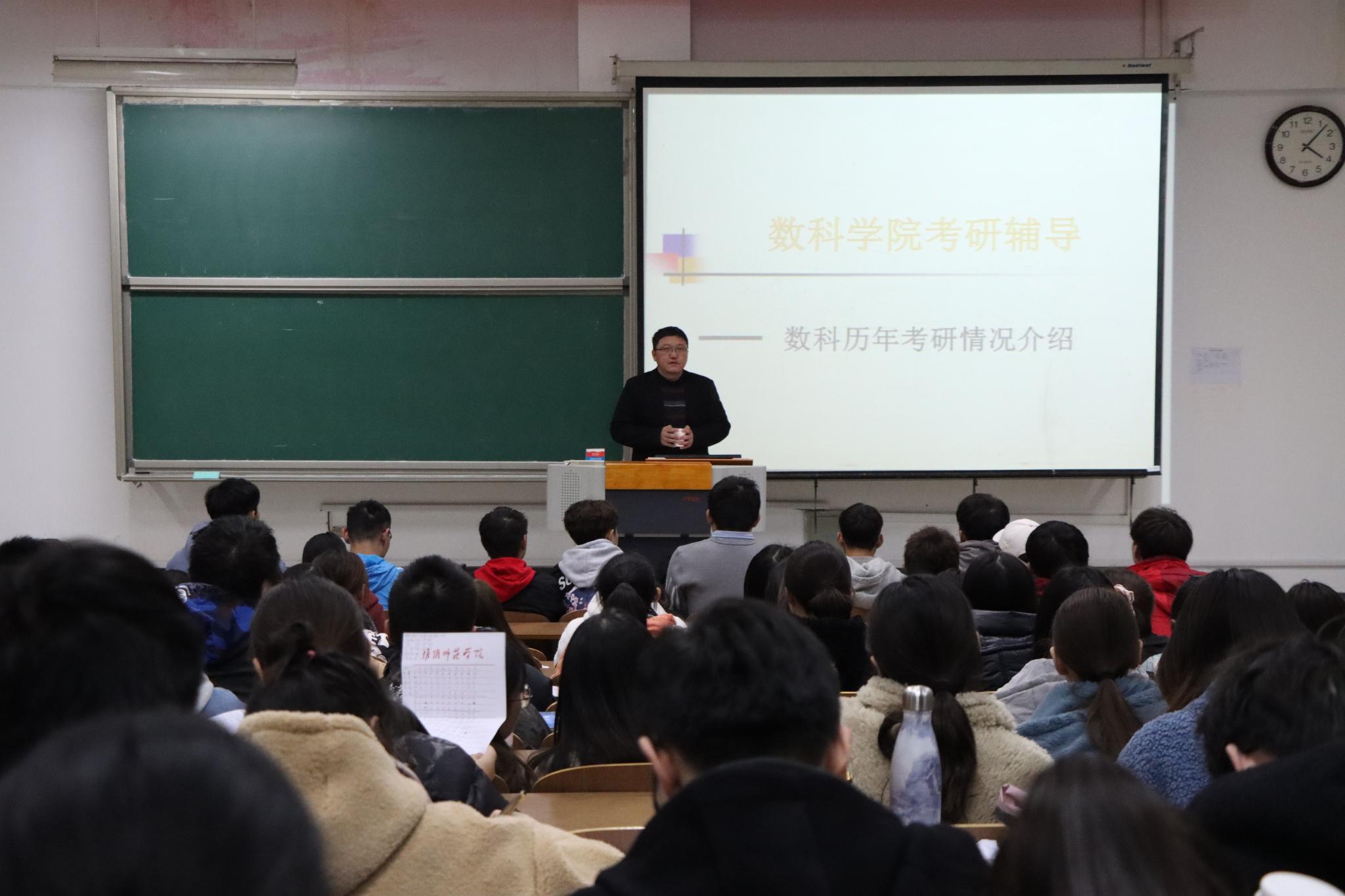 翔宇网11月25日电(记者 刘小琰 杨轲旭)为了帮助2018级学生更好地明确人生目标并制定下一步学习计划,11月24日,数统学院在理工西阶201召开了2018级师范生考研辅导讲座。数统学院2018级师范生参加,院长郭嵩主讲。