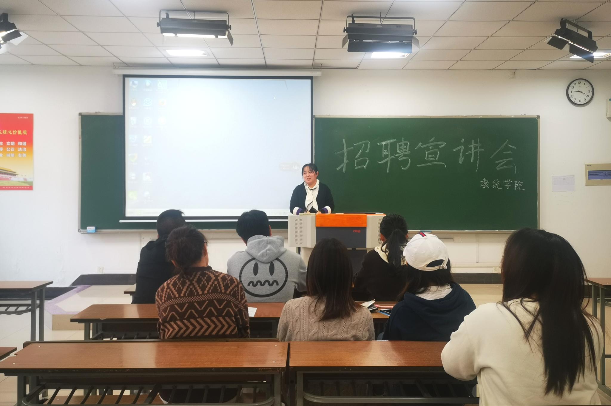 宣讲伊始,主讲人从多个方面进行一一分析,为毕业生深入浅出地分析了就业前景与职业规划,并介绍了企业的大体情况,简洁精悍地描述了企业在行业中的地位与优势。随后,主讲人进一步与其他不同的教育机构进行对比,客观地向在场毕业生展现了企业在体制与思想上的一些独到之处:在追求工作水平与生活质量的同时,教育情怀亦得以展现,为求职毕业生展现了企业的独到之处与深厚的思想积淀。
