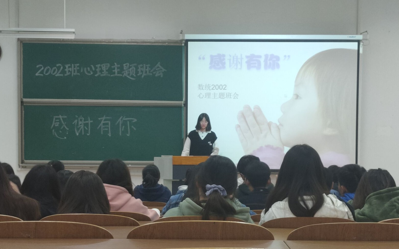翔宇网4月17日电(记者 徐运 潘文杰)正值“致敬百年路,坚定跟党走”主题教育月开展之际,为进一步加强大学生心理健康教育工作,普及心理健康知识,培养同学们感恩的良好品质,数统学院2020级各班于4月8日至4月15日期间,陆续开展以“感谢有你”为主题的心理班会。