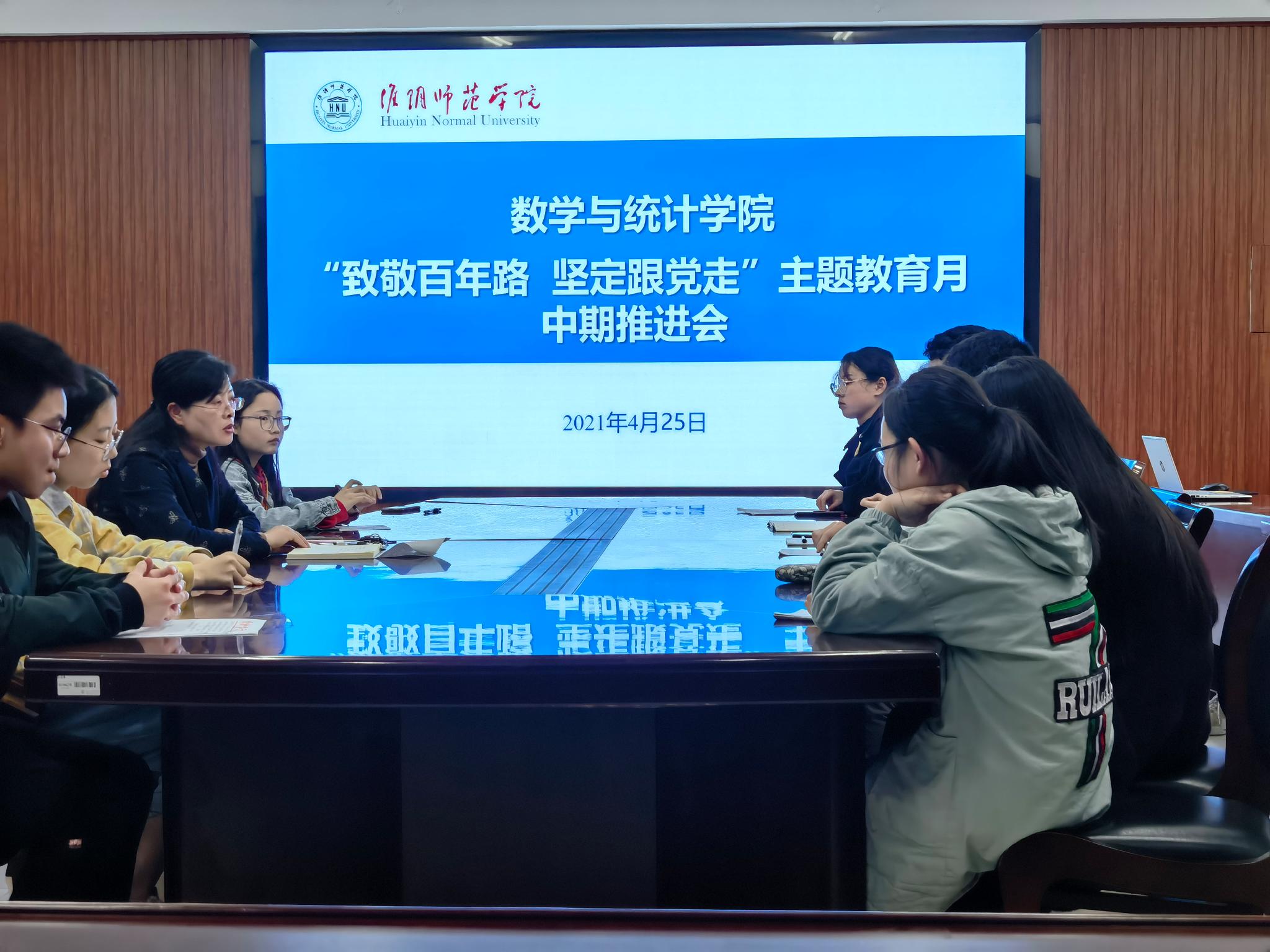 翔宇网4月26日电(记者 李芳 吕玮然)为积极推进“致敬百年路,坚定跟党走”主题教育月的扎实开展,4月25日晚,数统学院于理工北楼315会议室召开主题教育月中期推进会。院党委副书记谢海燕出席本次推进会,各班级班长及各项活动负责人参与此次会议。