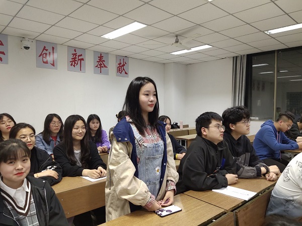 活动伊始,由连续两年获得五星级文明宿舍称号的宿舍长刘燕雯同学以PPT讲解的形式向大家展示宿舍风貌,紧接着张洲和陈小彤两位同学就展示的内容分享了对文明宿舍创建的看法及感受,他们表示,建立“文明宿舍”的长效机制可以让他们更有效地学会自我教育、自我管理以及自我服务,并且宿舍做到设施完善、通风安全和卫生清洁是很有必要的。