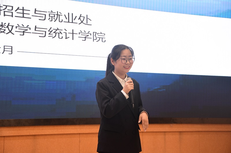 数统学院李子琪以中学数学教师为职业目标,结合自身学习经历、实习经验与自身性格展开竞职演说,详细阐述了自己对“第三次世界大战将是数学战”的理解与分析;文学院陈昊涵竞职高中语文教师,在自我介绍中展现自己丰富的履历与专业技能,面对老师提问“如何向学生讲解《山行》中‘斜’字的读音”时,他从课本教学与专业素养的角度进行回答分析;法政学院卞辰冉选择竞职法院民事庭法官,针对评委老师提出的“如何处理好情理法三者之间的关系”,她以金字塔型关系为基础,表达自己对于三者关系的独到见解。
