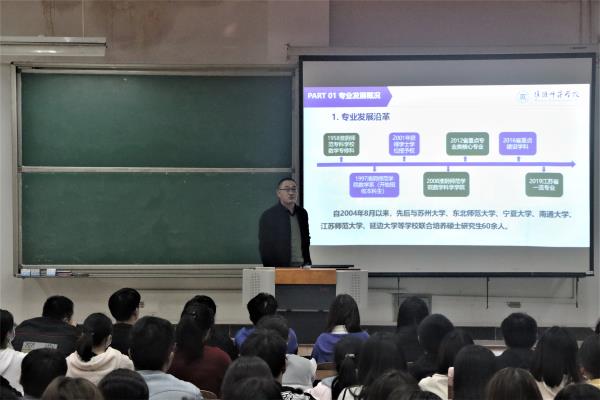 会议第二项进程,为帮助2020级转专业学生进一步了解新专业学习,更好地适应数统学院的学习与生活,臧庆佩老师从专业发展概况、专业特色优势、专业建设成效、专业学习方向四个方面向同学们简要介绍了数学师范专业的基础情况和人才培养体系。他强调,应重视当下基础学科的学习,及时调整自己的学习状态,通过不断的总结和反思,来强化自己的学习能力。同时,他向同学们展现了学院强大的师资力量,要求同学紧跟老师步伐,积极提升自身素养。他强调了专业绩点的重要性,提醒学生时刻提高学习的紧张程度,为考研与考编打下坚实的基础。