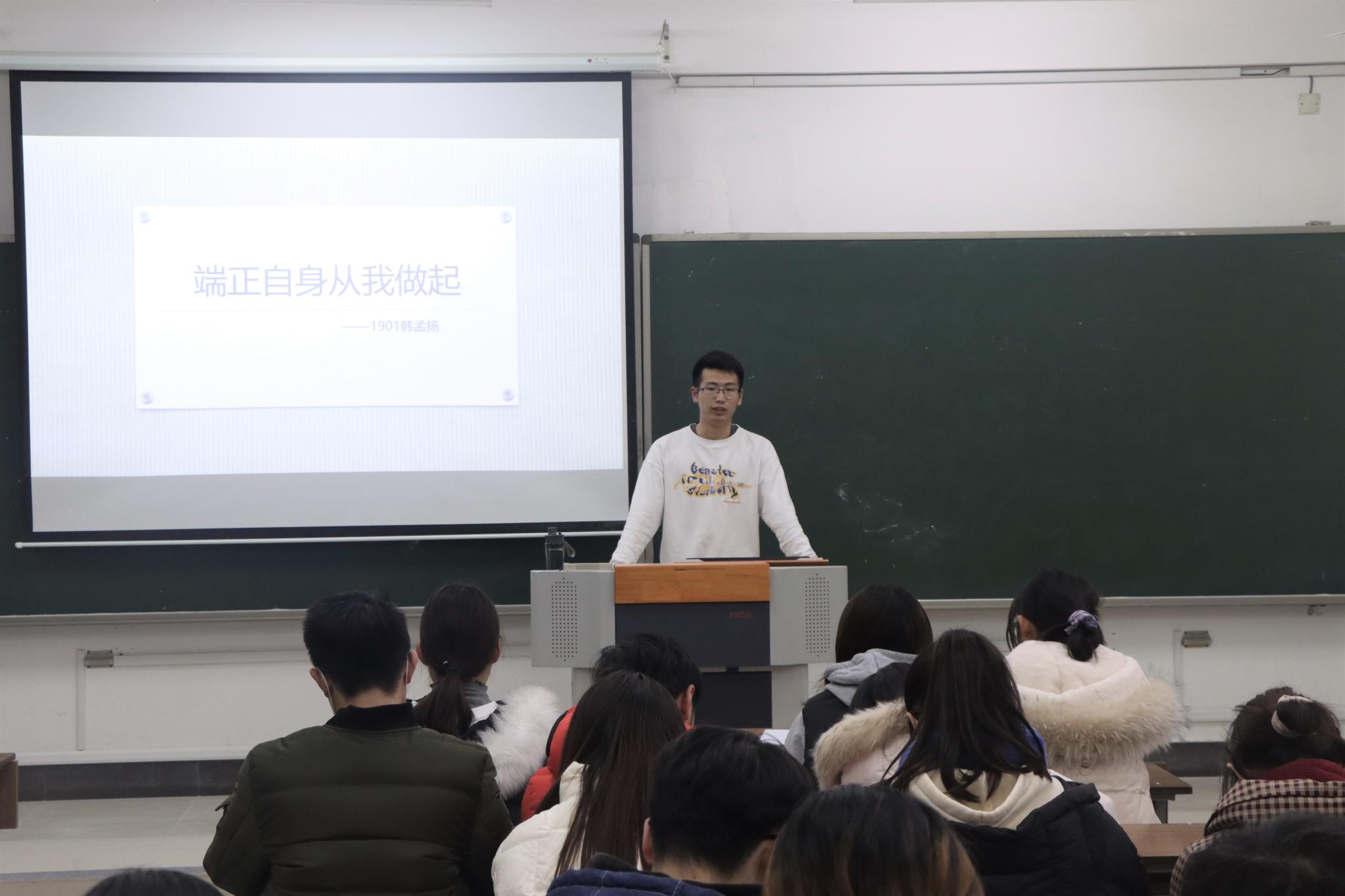 会议伊始,韩孟杨发言。他从学生干部的自身素养的培养和责任义务的履行两个方面展开,首先,他强调,要恪守学生本分,用知识与学习不断充实并提高自我,发挥学生干部的模范带头作用;接着,他提出,全心全意服务广大同学是基本责任,要牢记服务宗旨,认真倾听同学们的诉求,积极帮助同学解决困难。最后,他提出要营造平等的氛围,勤勉务实地做事,把让广大同学满意作为工作目标,勤奋工作,为广大同学做出表率。