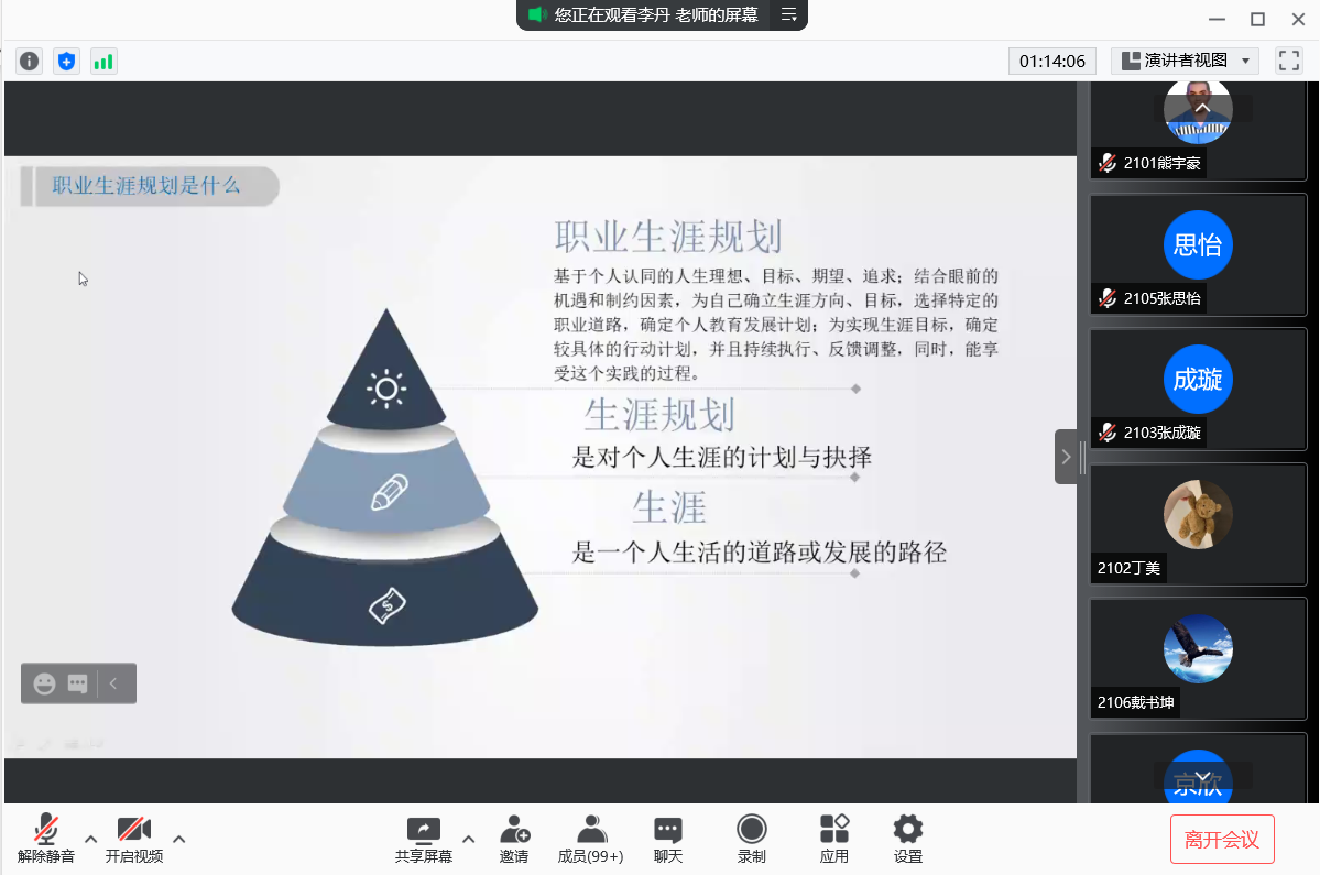 最后,李老师和大家分享了制定目标的原则,提出在大学四年各个阶段的任务,希望同学们从自我探索向生涯决策逐步发展,在有限的时间里提高效率,做好规划,对同学们职业生涯表示祝愿。相信在本次讲座的帮助下,同学们一定能从大学四年的规划做起,成就自己的精彩人生。