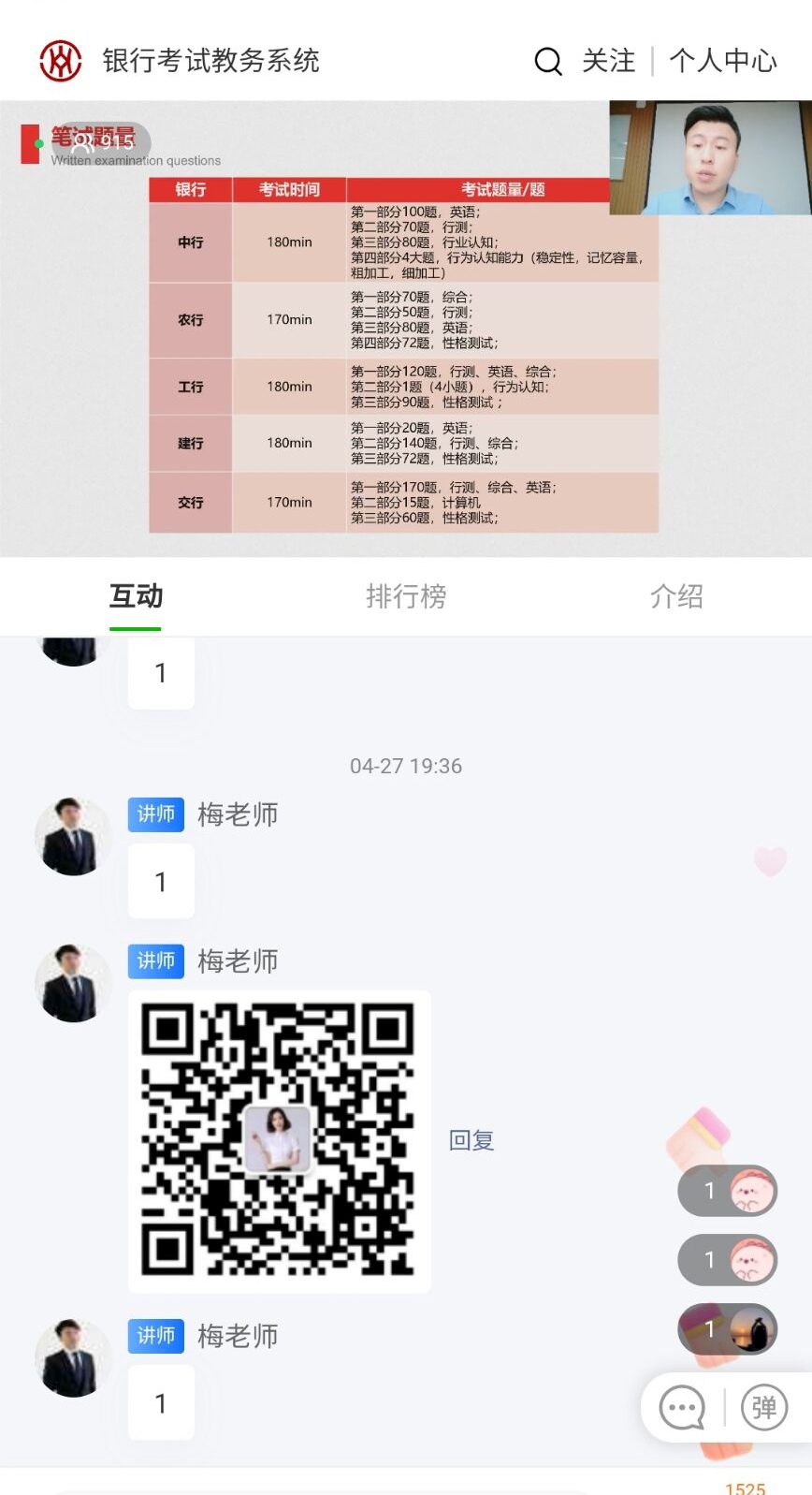 图为梅老师讲解各银行笔试题量。记者 黄奕菲
