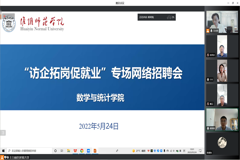 数学与应用数学(师范)专业杨轲旭、统计学专业卫树婧两位学生在线作了自我推介,表达了自己心仪的单位,希望能与招聘单位达成就业意向。其他同学通过电子邮件、网络互动等方式与心仪的招聘单位进行沟通和自荐。