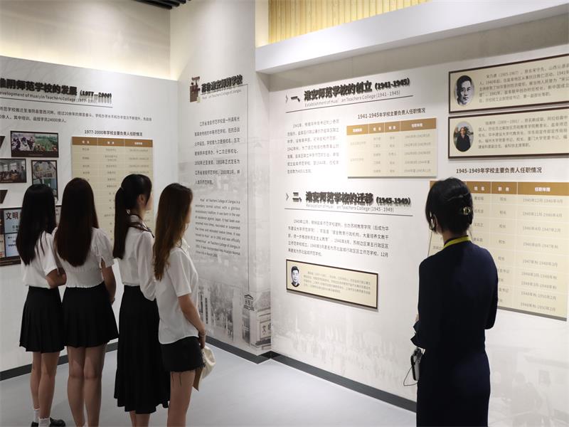 来到校史馆内,毕业生党员自觉组队,井然有序进行参观。在讲解员的带领下,依次来到各个展厅,了解淮师的起源与发展、过去与现在。校史馆讲解员结合校史馆内照片、实物及各个文化展板,向毕业生们详细讲解了淮师六十余年的风雨历程。在参观过程中,同学们认真聆听讲解,仔细记录淮师发展足迹,校友前辈们不畏艰辛、不懈奋斗的精神深深打动了各位同学。最后校史馆讲解员讲解了历年来学校卓越的领导与学生的优秀成果和贡献。这不仅激发了同学们对他们崇高的敬意,也鼓励同学们努力学习科学文化知识,为学校以及社会发展做贡献。在参观过程最后,各位毕业生党员身着党徽,面向党旗进行宣誓,活动在庄严的宣誓声中落下帷幕。