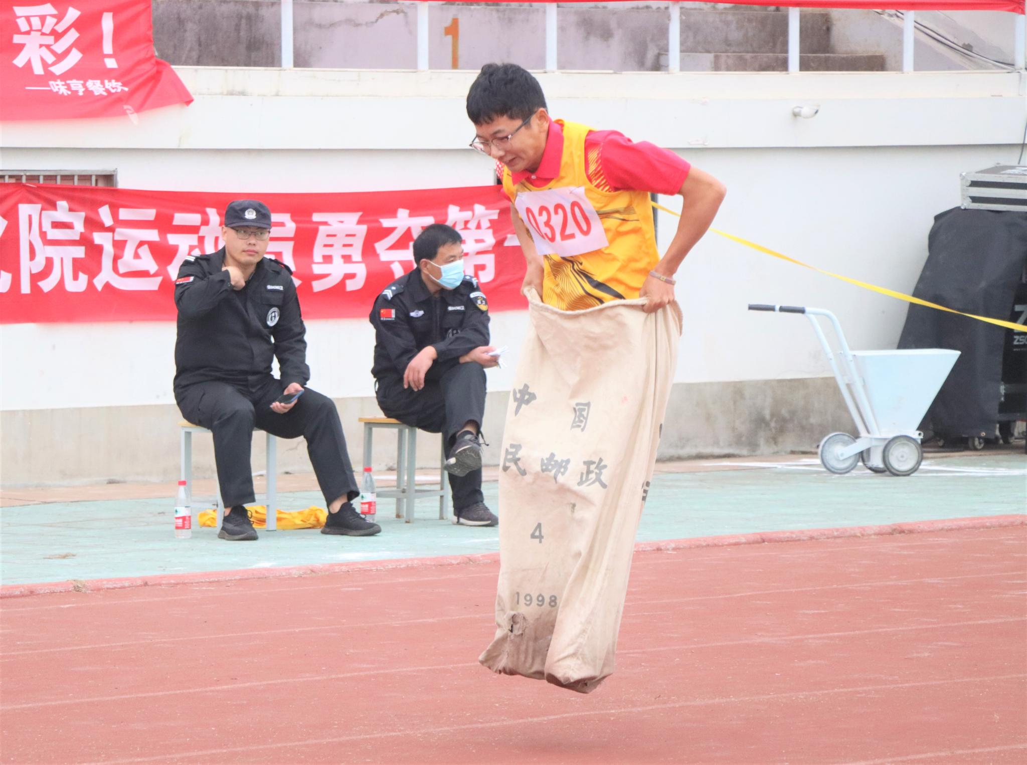 11月11日上午,袋鼠跳接力开始,运动员们手提口袋,并拢双腿,在一浪高过一浪的加油声中,步步稳扎稳打,起跳落地后,并没有急躁地开始下一跳,保持平衡后,再奋力向队友冲去,宛如一只只机警的小袋鼠。身姿矫健如脱兔,一跃腾龙上半空!
