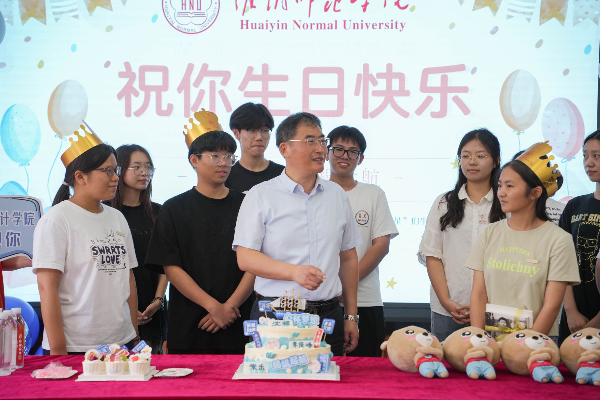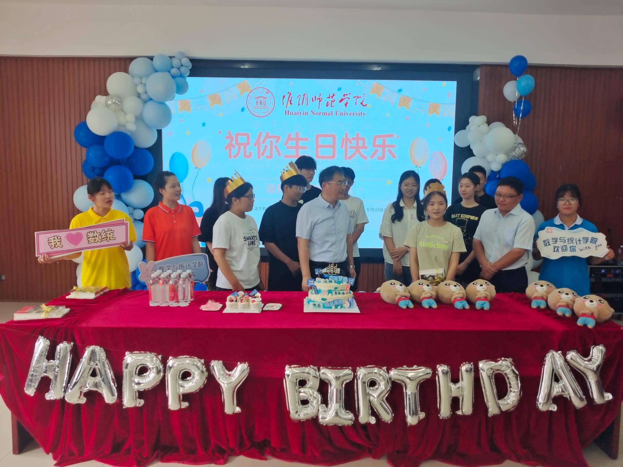 910日,是2023级新生报到的日子,学校到处洋溢着“萌新”们的欢声笑语。在有条不紊的迎新过程中,一场暖心的生日会也拉开序幕。数统学院为3名当天过生日的新生送上了一份特别的“成人礼”,以独特的方式欢迎他们加入淮师数统学院大家庭。校党委书记尚洪波、副校长闫超栋、党办校办、党委学生工作部相关负责同志和学院党政领导、师生代表一同到场参与活动。