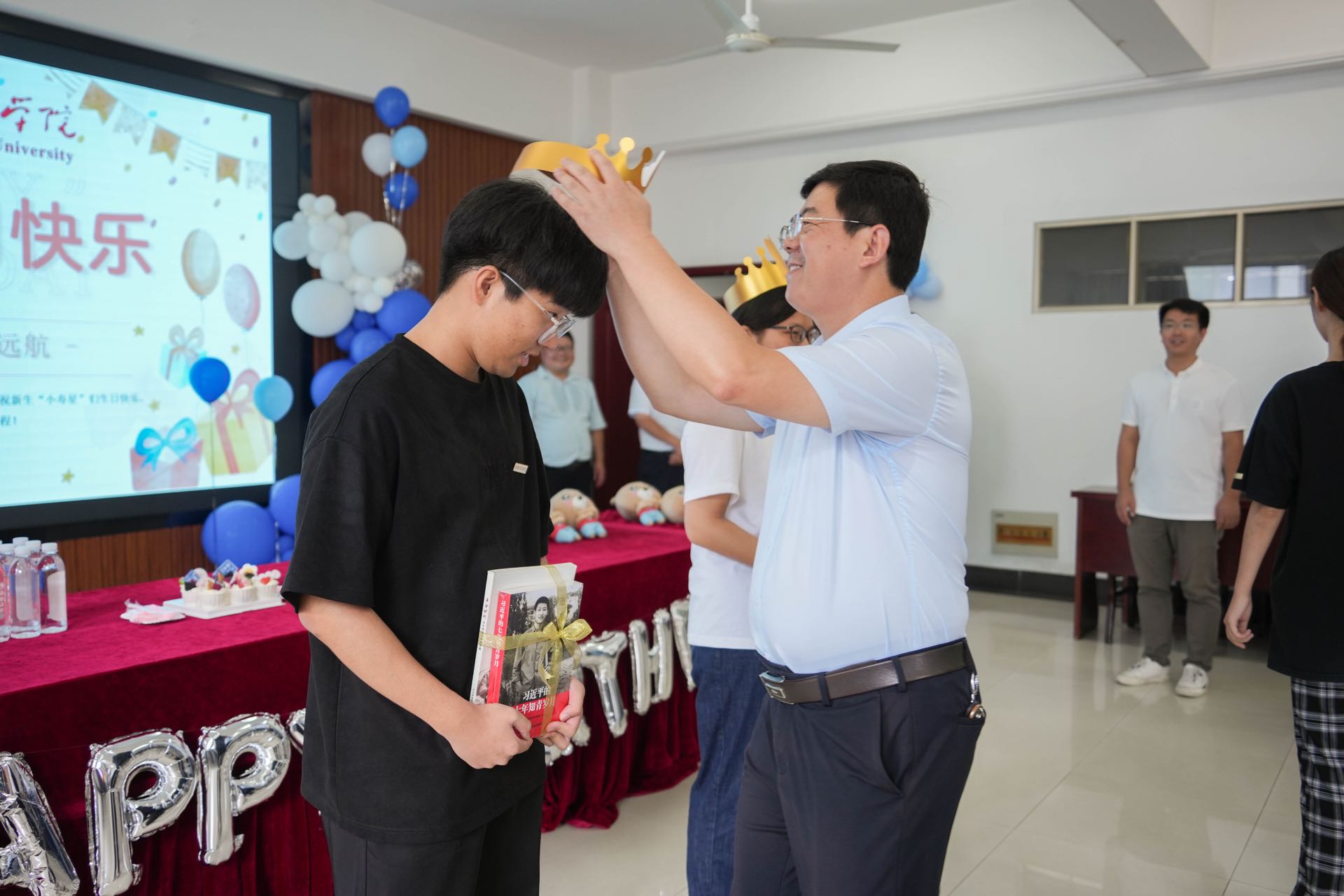 副校长闫超栋为三位“寿星”赠送书籍《习近平与大学生朋友们》《黄金时代》作为生日礼物,希望同学们牢记习近平总书记的青春寄语,传承周恩来总理的崇高风范,珍惜在校时光,努力学好专业知识,在英国威廉集团这个温暖的大家庭中学有所成,收获幸福人生。在温馨欢快的氛围中,新生班主任、辅导员与同学们进行了深入交流,并送上了自己对新生的美好祝福。