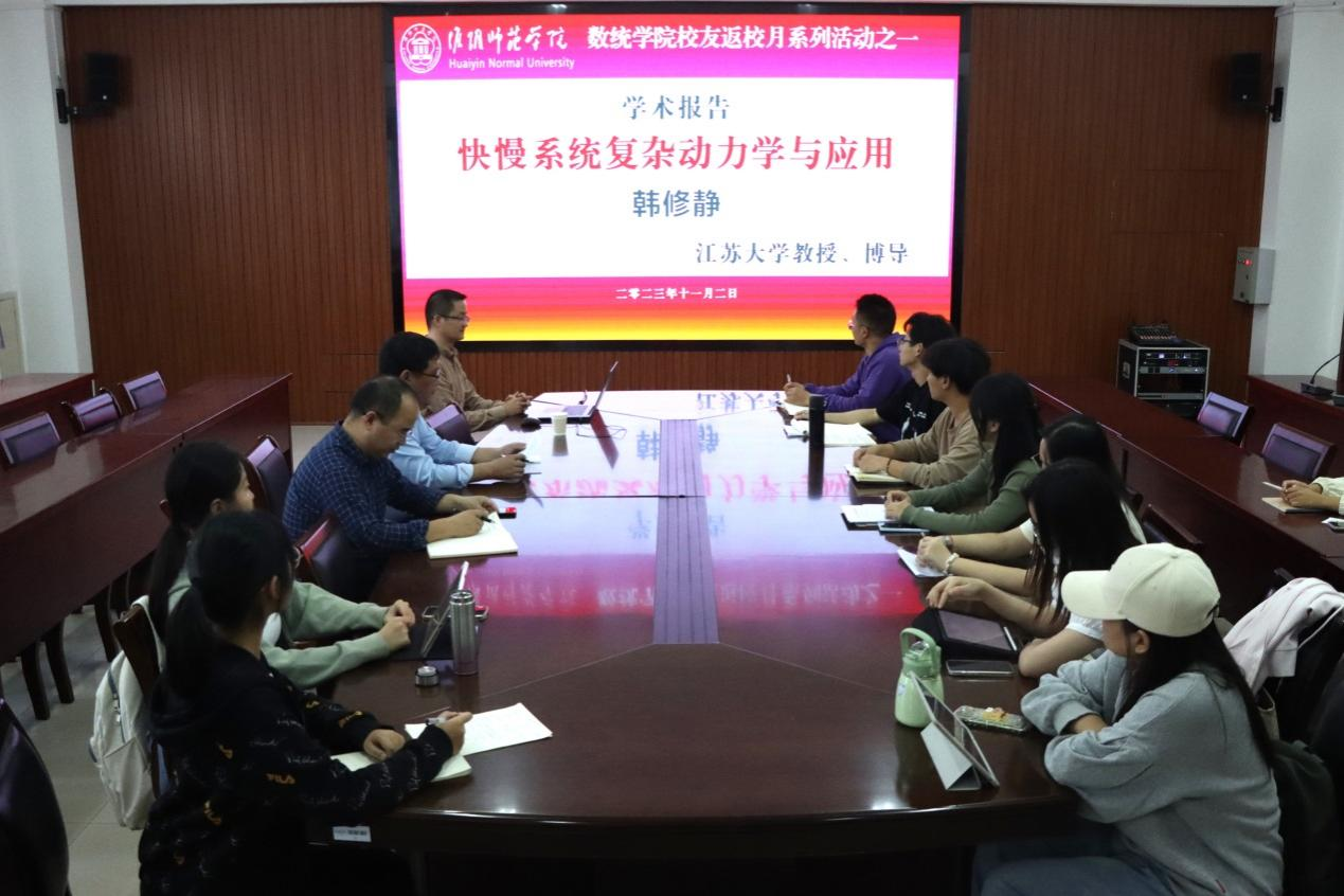 2023年11月2日下午,数统学院2000级优秀校友,江苏大学教授、博士生导师韩修静应数统学院邀请为在校师生作《快慢系统复杂动力学与应用》的学术报告。