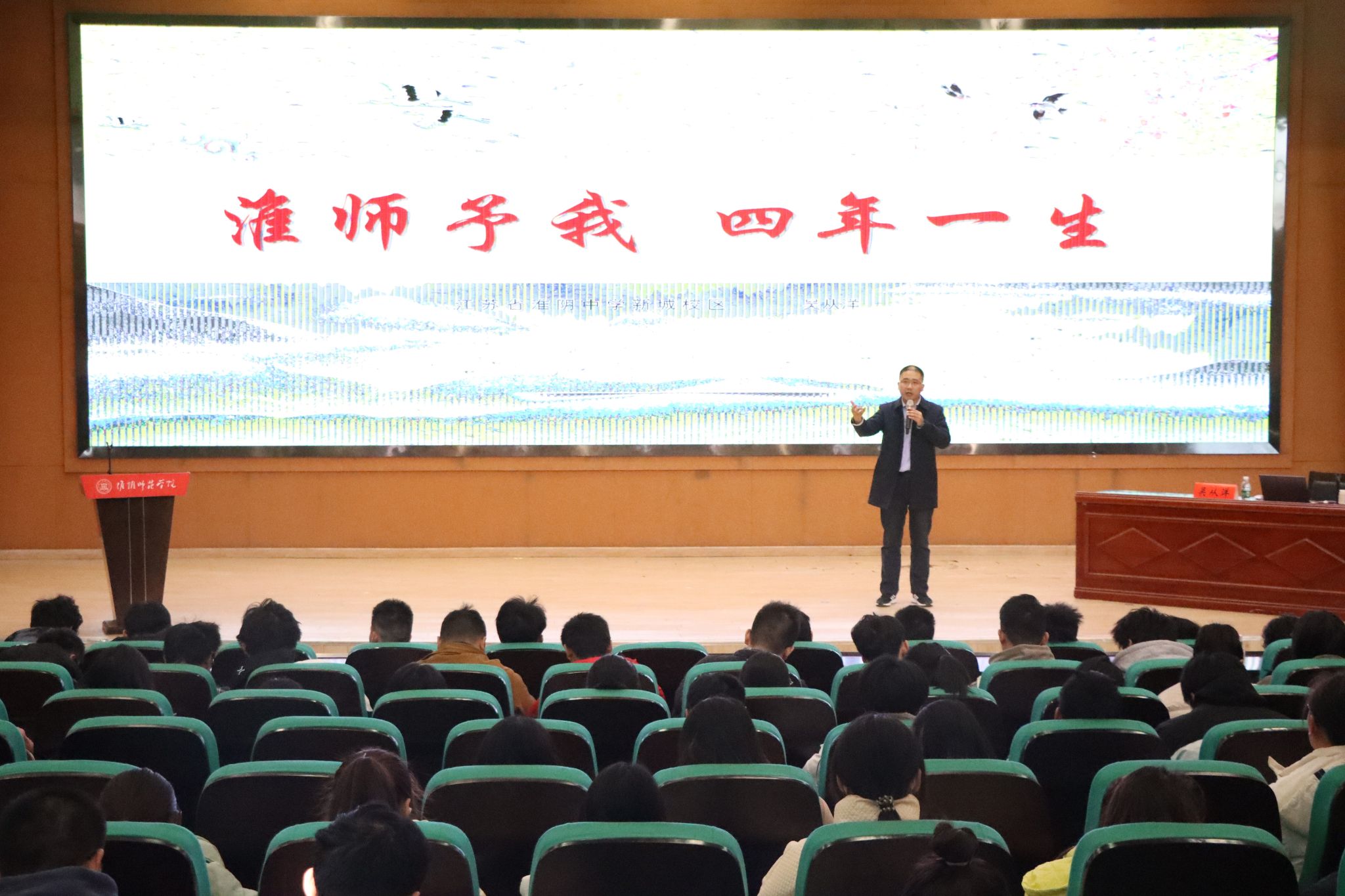 20231119日上午,数统学院1997级优秀校友,江苏省淮阴中学新城校区副校长、江苏省淮阴中学教育集团新城开明中学校长吴从洋应邀为在校师生作题为《淮师予我,四年一生》的专题报告。