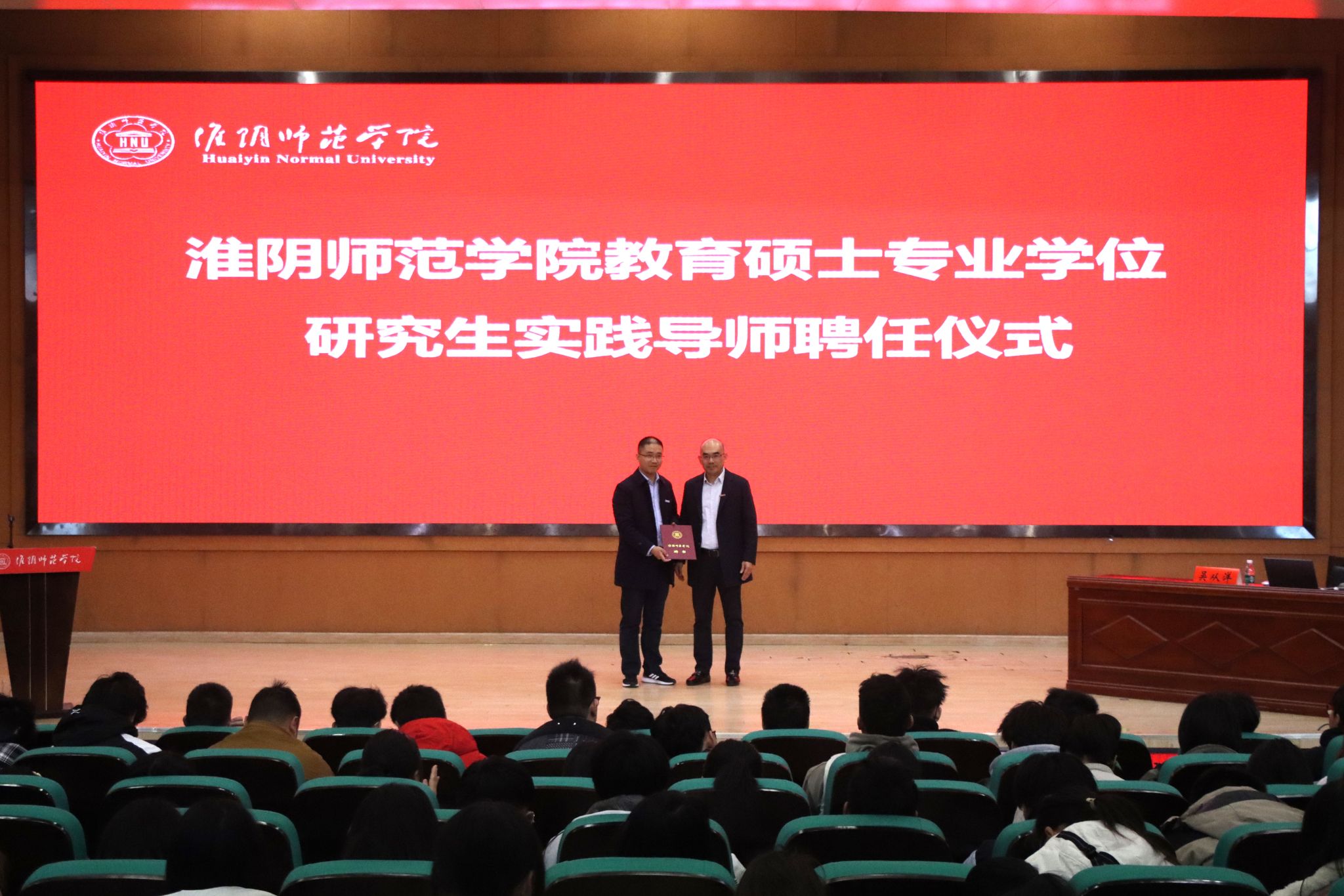 活动最后,学院党委书记史红波为吴校长颁发淮师研究生实践导师聘任证书。