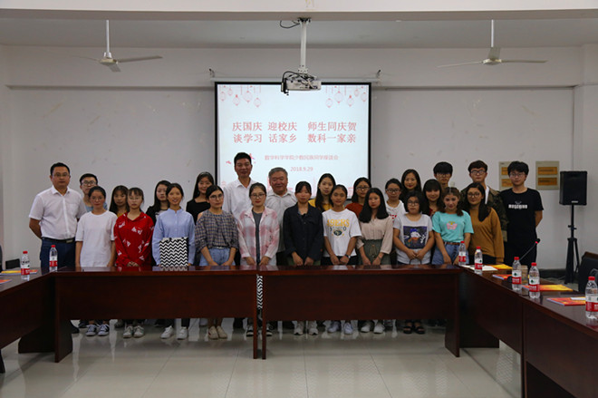 淮师新闻网9月30日电(记者 王潇萌 李剑)今年是国庆69周年和校庆60周年,为进一步促进少数民族同学了解校史,喜迎国庆,加强少数民族学生的交流,9月29日下午,数科学院在理工北楼315会议室举办少数民族同学座谈会。院党委书记高卫国、院关工委常务副主任郭文华参加座谈会。